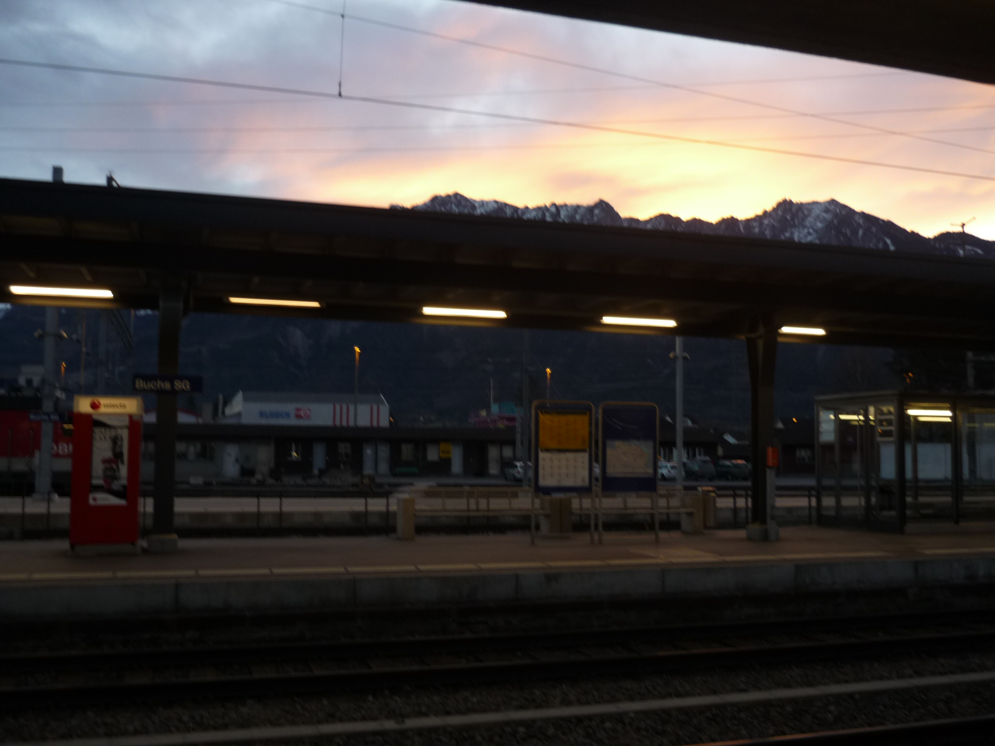 Aproximadamente a las 6am se llegó a Buchs, una estación cerca de la montaña, con pintas de abandonada, a pesar de ser la estación de entrada de Liechtenstein.
