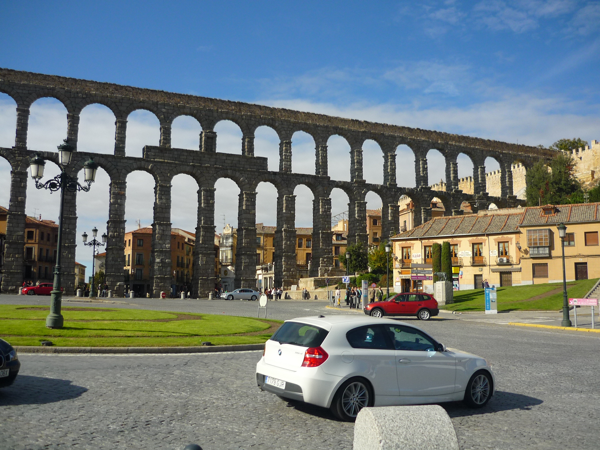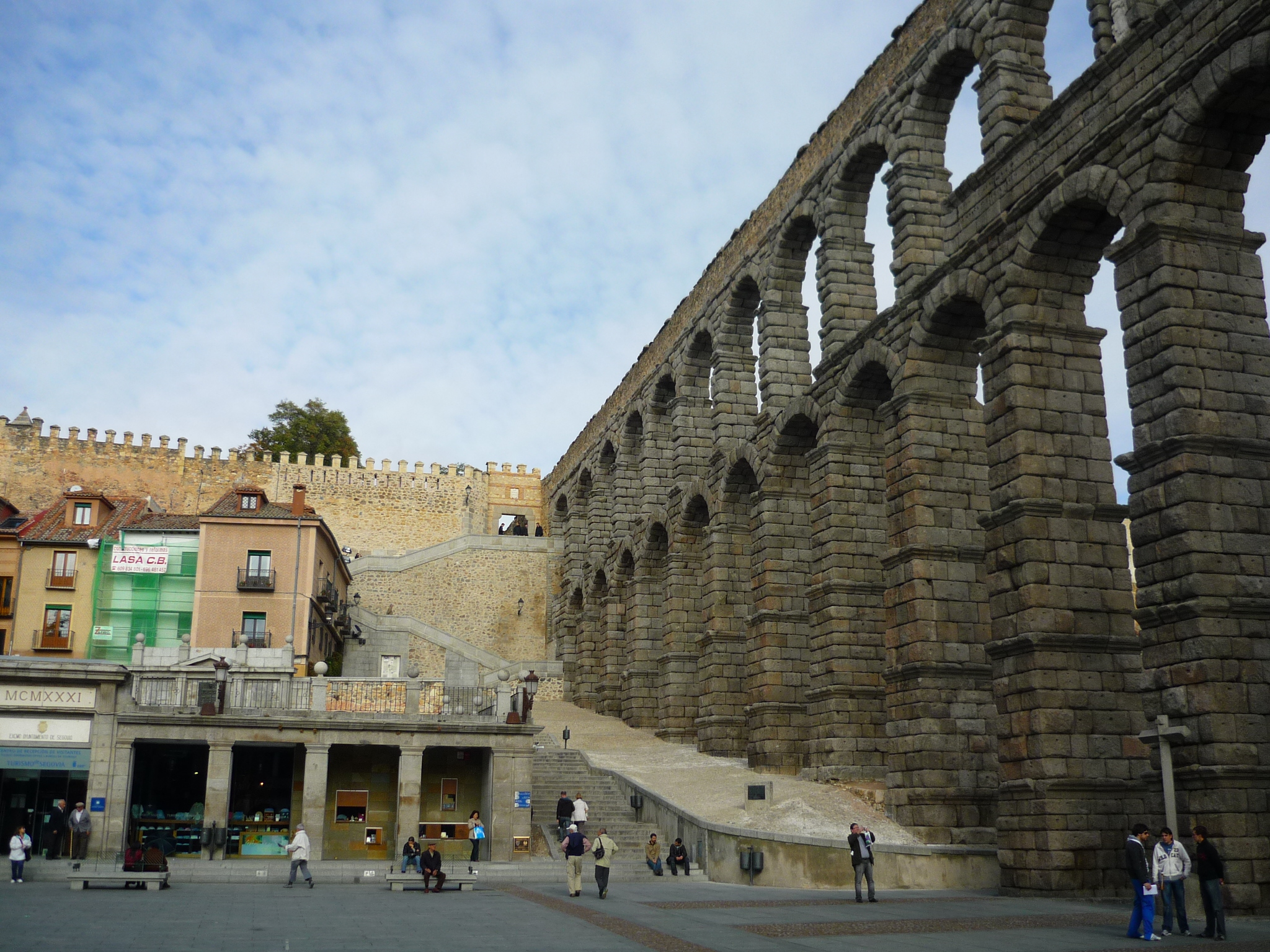 la 1º parada fue el acueducto de segovia, el cual recorrimos de inicio a finm y es de lo mas turistico del pueblo ya que impone estar bajo el, luego seguimos por sus calles, entrando en el casco antiguo, hasta llegar a la catedral, y seguir hasta el albaicin, castillo del cual se saco la imagen del castillo de walt disney