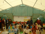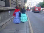 anduvimos mucho tiempo buscando sitio donde entrar, mientras nos rodeaban los vestidos de topos las mantillas y los abanicos, finalmente entramos a una que estaba llena pero se estaba a gusto, aunque con el tiempo, el calor, el rebujito y la fritanga se hizo un poco pesado, habremos estado unas 2 horas alli hasta que cerca de la hora de la merienda salimos y nos fuimos a andar por la zona del rio