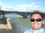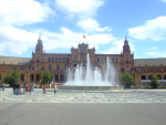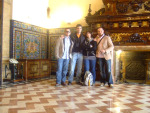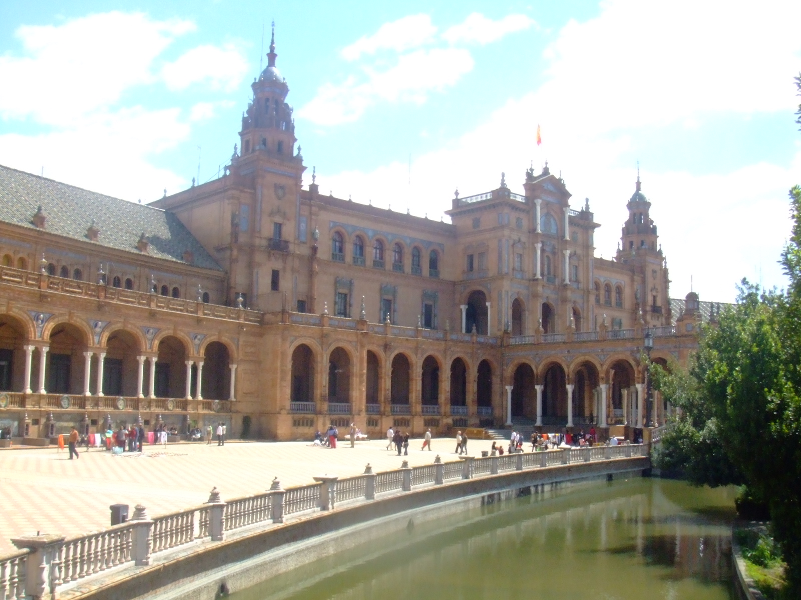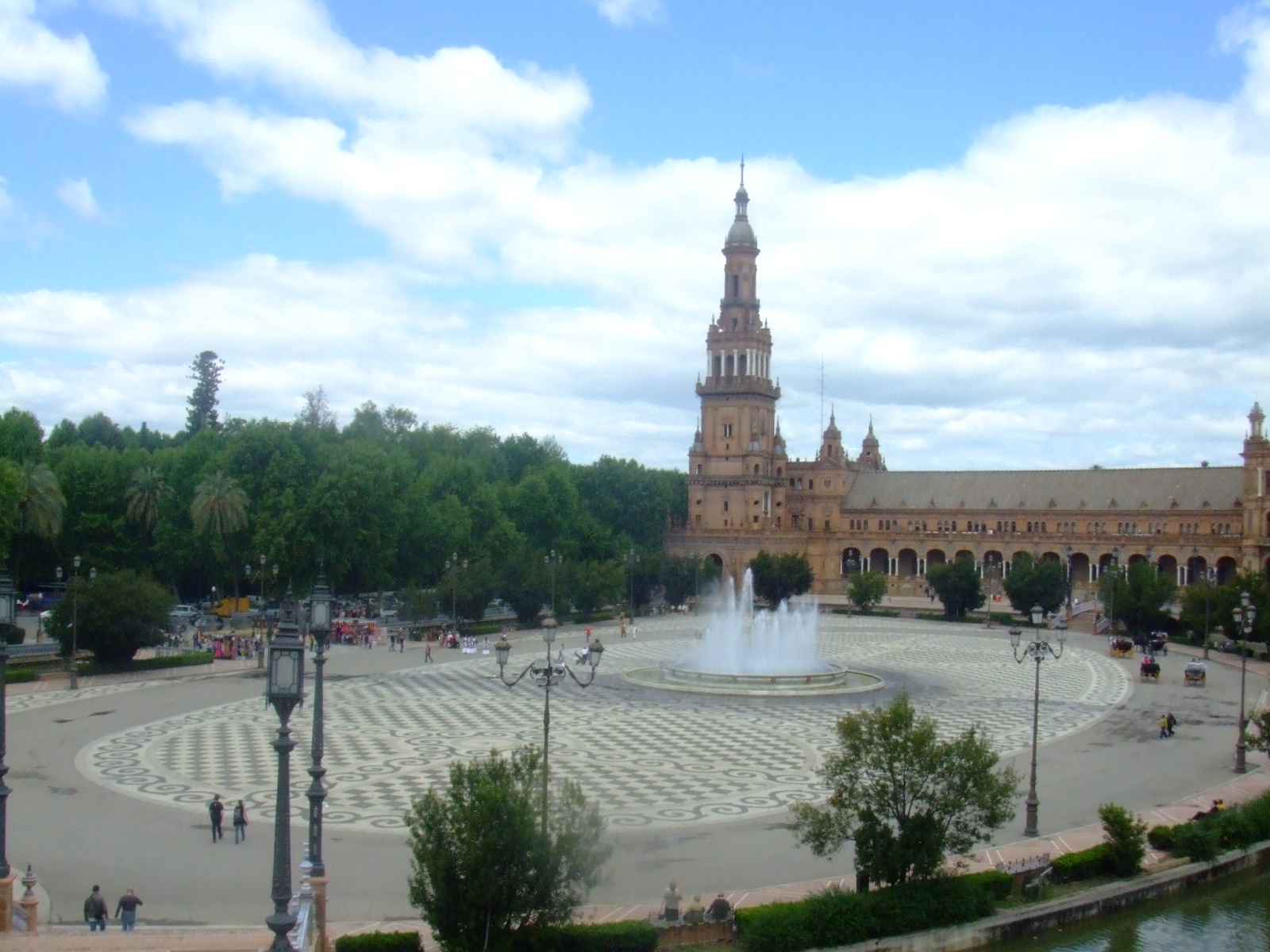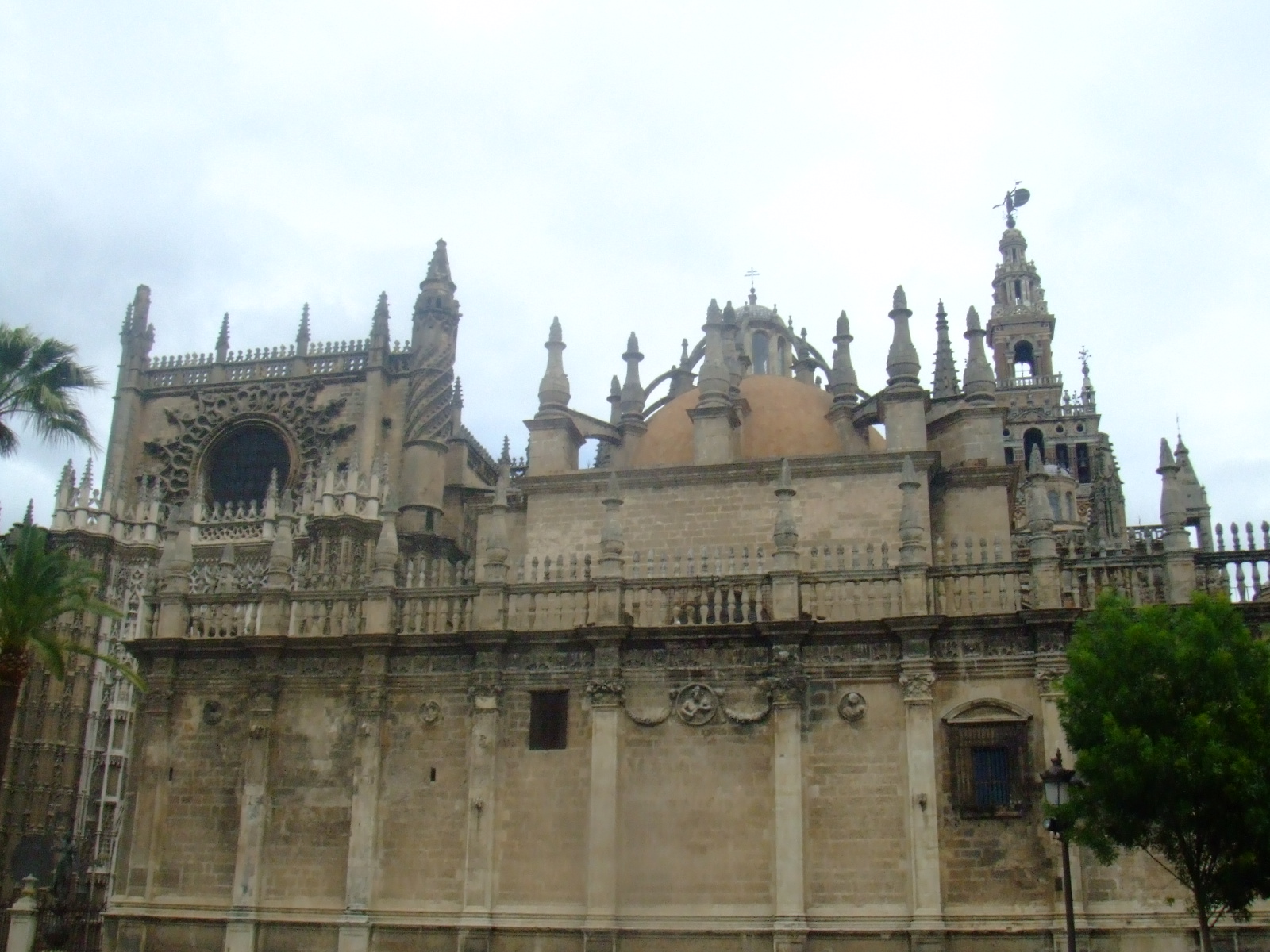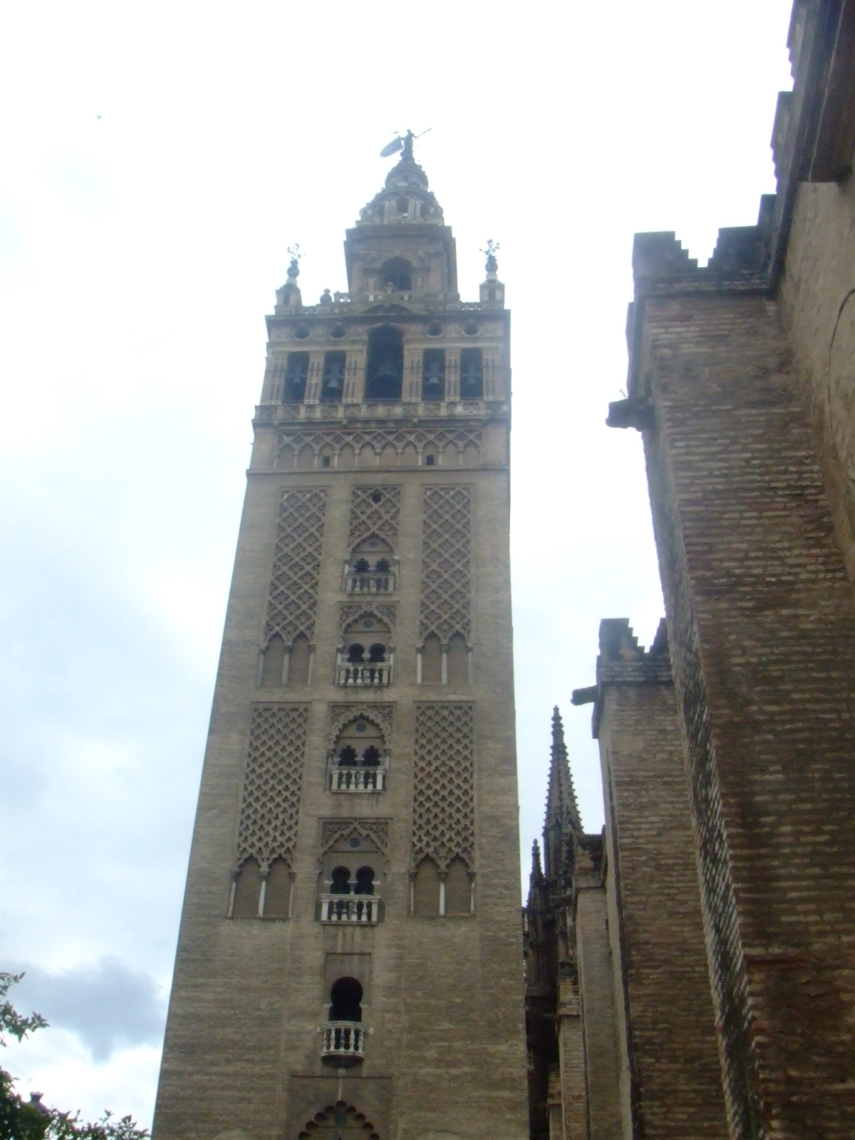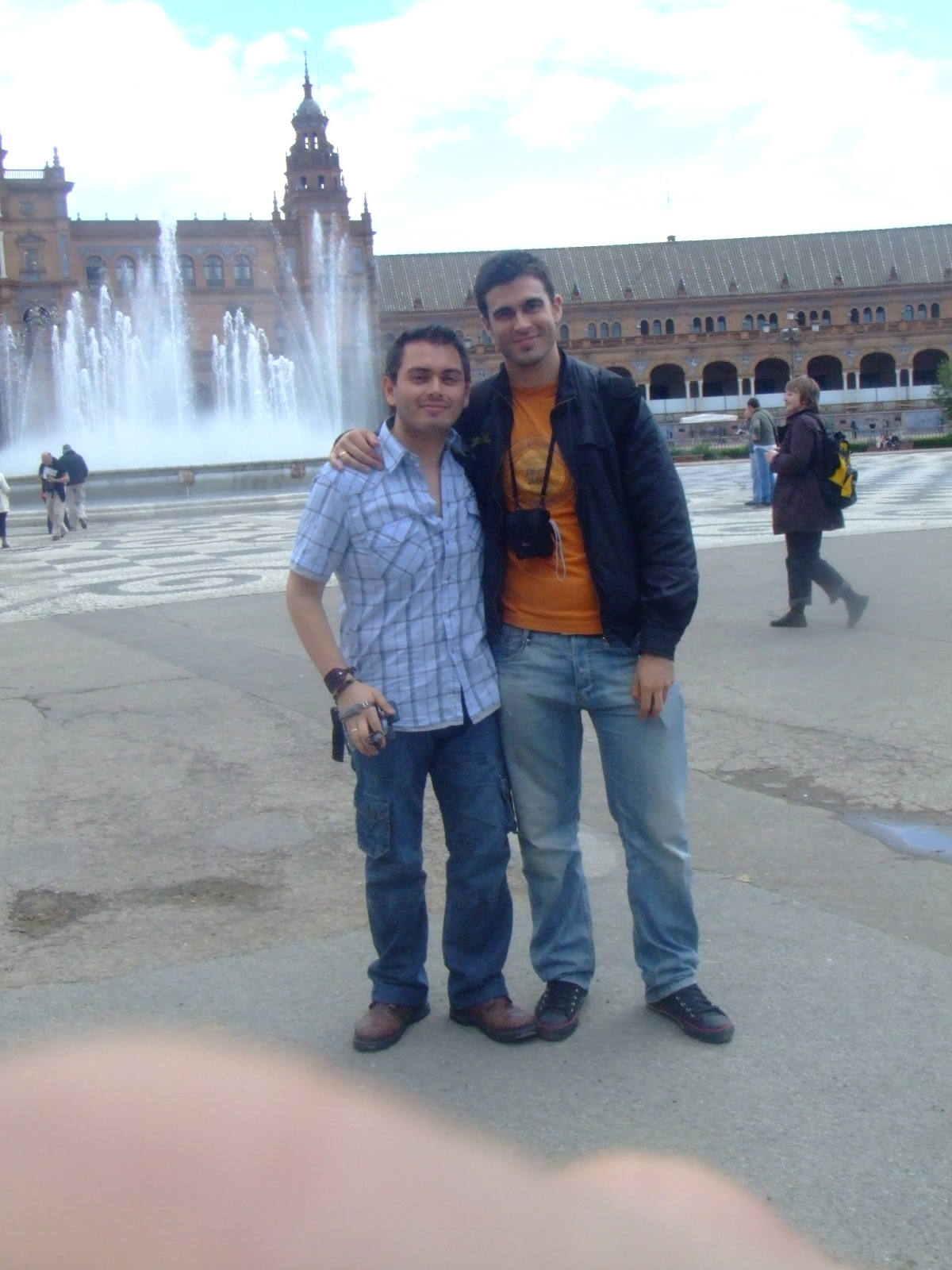 la gente llego sobre las 10am y comenzamos la ruta, buscando la zona central de sevilla; la giralda y la plaza central, la giralda estaba cerrada, joooo, por las lluvias y tal asi que nos contentamos con verla por fuera, de ahi entramos aun hotel tipico con decoracion muy tipica de la zona, y luego cruzamos unas calles y llegamos a una zona verde; pero Ivan perdio su mochila, por suerte, estaba en el sitio anterior, pero vaya susto!