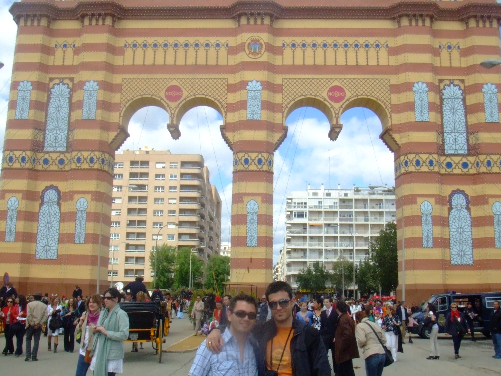 dirigimos nuestros pasos hacia la zona de la feria, que nos recibia con un gran arco, muchas casetas publicas y privadas, ademas de carruajes y trajes tipicos